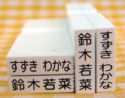 ネーム印の単品商品です。 お名前以外にも、クラス名などで作成されるのにも使えます。ご注文の際は必ず、ネーム印にされるお名前と表記・向きをご指定下さい。※1個の価格です。※実物大ではありません。