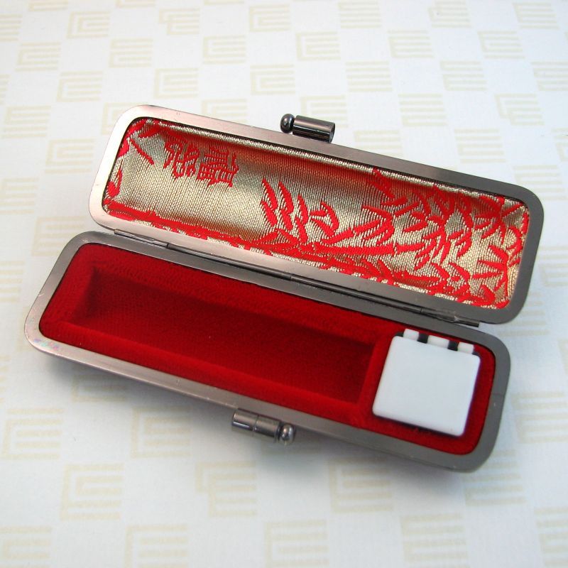 高級本トカゲ皮を使用した印鑑ケースです。内張りは華やかで演技の良い朱竹柄です。朱肉入り。【収納できる印鑑サイズ】丸棒印鑑 10.5mm/12mm×丈60mm【素材】 トカゲ皮【フレーム色】 ブロンズ色【カラーバリエーション】 暗トカゲ/赤トカゲ/茶トカゲカラー/暗トカゲカラー/赤トカゲカラー/茶トカゲ